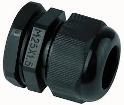 A range of compression type cable glands manufactured in black or off white Nylon 6.6.; Raw material is Nylon; The protection class is certified as IP68;The thread size is M25 and the minimum cable diameter is 6mm