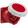 CEE-flanged socket straight (75x75) 32A 4p 3h IP67, Housing material PA6 rated current 32A, Number of poles 4 (3P+PE), Contacts brass nickel plated, Connection technology screw terminals,The dimensions are (flange/fixing center) 75x75 mm / 60x60 mm,IP protection class is IP67
